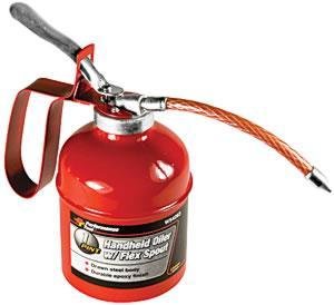 Performance Tool 1 pint handheld oiler with flex spout part number W54263.Drawn steel body. Durable epoxy finish.