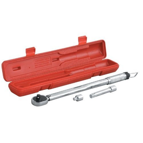MIT 1/2"-DRIVE CLICK TORQUE WRENCH KIT features: Chrome Plated Alloy Steel Construction, Micrometer Adjusting, Reversible Ratcheting Lock Holds Torque Setting, No Pointer or Dial to Monitor - Wrench Clicks when Pre-set Torque is Reached, Sealed Mechanism for Greatest Accuracy, Longer Calibration, Complete with Conversion Table Chart, Professional Quality, Dual Scale Torque Range: 20-150 Ft./Lbs. 1.4-20.7 Mkp. 1-pc. 1/2"-Dr. (F) x 3/8"-Dr. (M) Adapter, 1-pc. 1/2"-Dr. Torque Wrench, 1-pc. 1/2"-Dr. 5" Extension Bar, 1-pc. Molded Plastic Carrying CaseThis website is a participant in the Amazon Services LLC Associates Program, an affiliate advertising program designed to provide a means for sites to earn advertising fees by advertising and linking to amazon.com